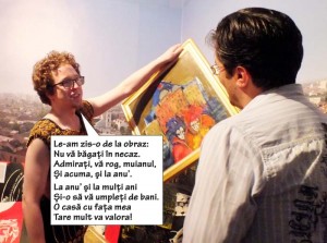 Doamnă arhitect, suntem în faţa unui eveniment artistic epocal! Nu permiteţi să se dea cu bidineaua peste opera de artă, câtă vreme oraşul mai are resurse de materiale de la staţia de epurare.